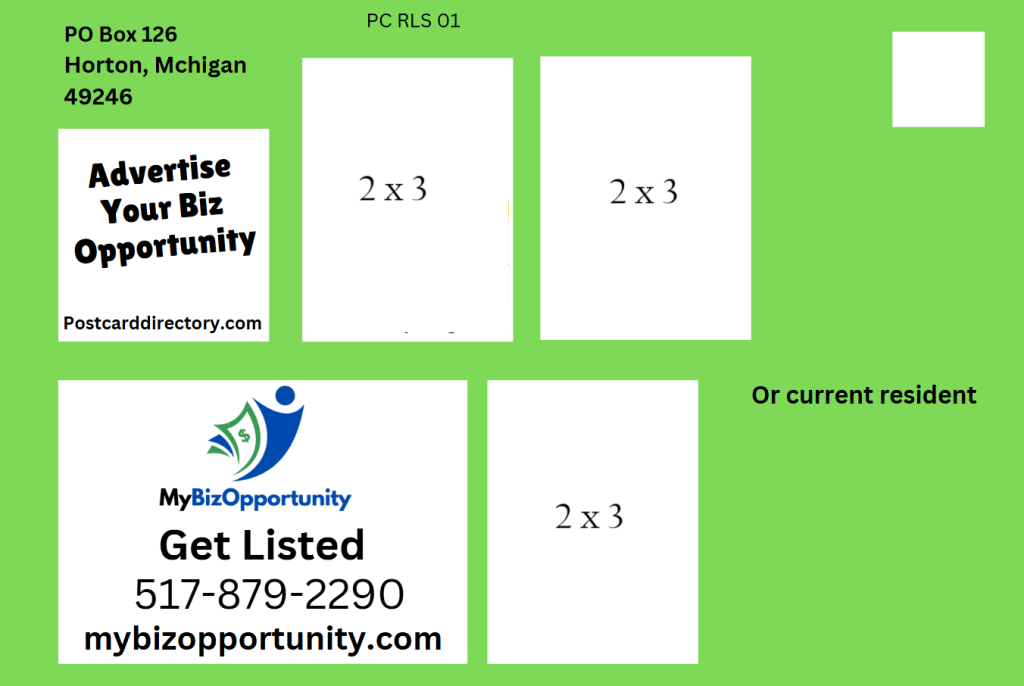 Reach a targeted audience of entrepreneurs and opportunity seekers by advertising on our Postcard Directory. Showcase your business opportunity through a proven, eye-catching format that stands out and drives results. With affordable rates and high visibility, our directory is the perfect platform to grow your brand and attract new leads. Don’t miss the chance to connect with motivated individuals ready to take action—advertise with us today!