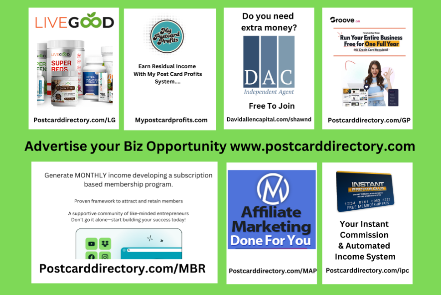 Reach a targeted audience of entrepreneurs and opportunity seekers by advertising on our Postcard Directory